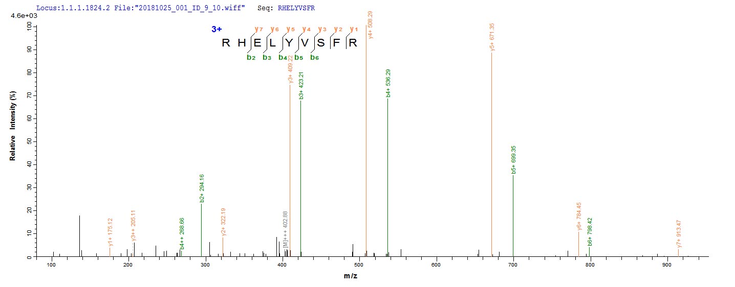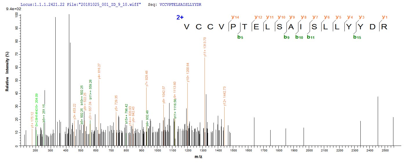 Based on the SEQUEST from database of E.coli host and target protein, the LC-MS/MS Analysis result of CSB-EP002746MO could indicate that this peptide derived from E.coli-expressed Mus musculus (Mouse) Bmp8b.