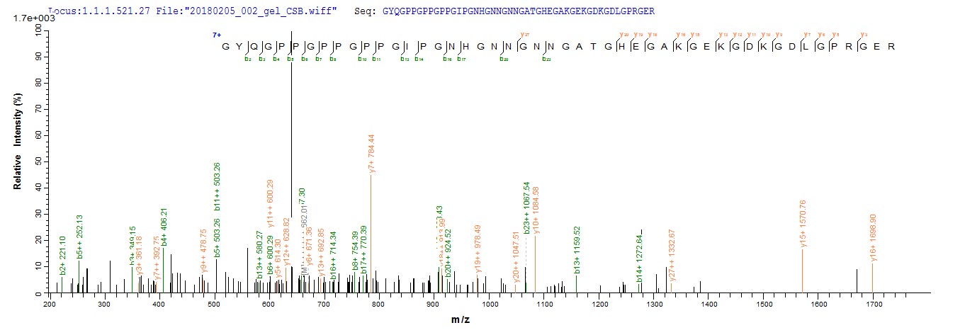 氨基酸序列QDEYMESPQAGGLPPDCSKCCHGDYGFRGYQGPPGPPGPPGIPGNHGNNGNNGATGHEGAKGEKGDKGDLGPRGERGQHGPKGEKGYPGVPPELQIAFMASLATHFSNQNSGIIFSSVETNIGNFFDVMTGRFGAPVSGVYFFTFSMMKHEDVEEVYVYLMHNGNTVFSMYSYETKGKSDTSSNHAVLKLAKGDEVWLRMGNGALHGDHQRFSTFAGFLLFETK