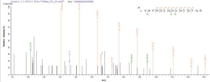 Based on the SEQUEST from database of E.coli host and target protein, the LC-MS/MS Analysis result of CSB-EP011650MO could indicate that this peptide derived from E.coli-expressed Mus musculus (Mouse) l2rb.