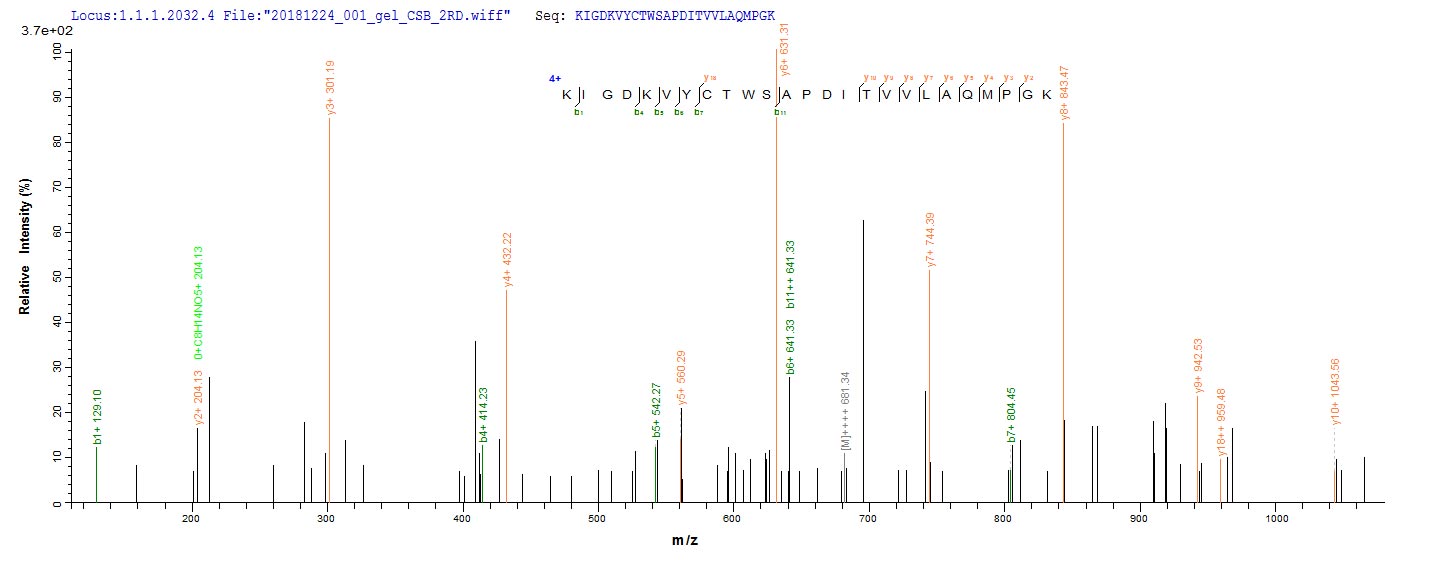 Based on the SEQUEST from database of E.coli host and target protein, the LC-MS/MS Analysis result of CSB-EP018229MO could indicate that this peptide derived from E.coli-expressed Mus musculus (Mouse) Pmaip1.