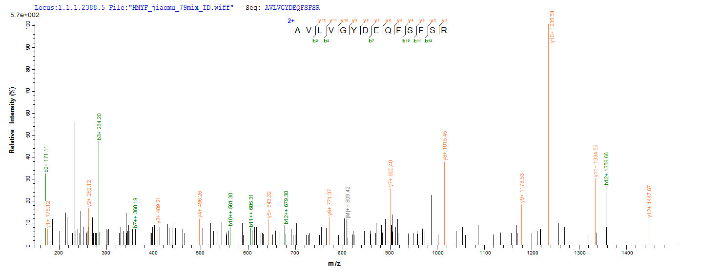 Based on the SEQUEST from database of E.coli host and target protein, the LC-MS/MS Analysis result of CSB-EP017749MO could indicate that this peptide derived from E.coli-expressed Mus musculus (Mouse) Pdxp.