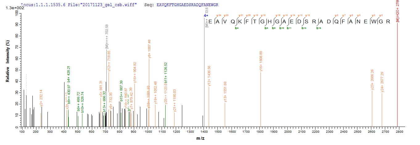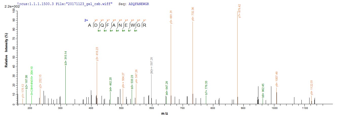 Based on the SEQUEST from database of E.coli host and target protein, the LC-MS/MS Analysis result of CSB-EP361411MO could indicate that this peptide derived from E.coli-expressed Mus musculus (Mouse) SAA3.