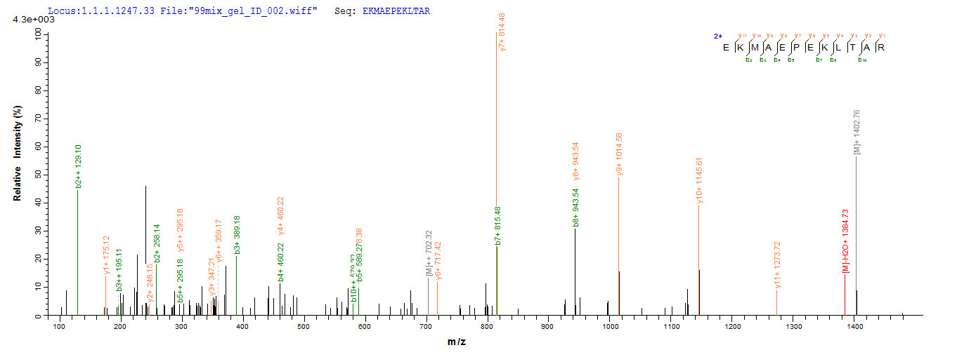 Based on the SEQUEST from database of E.coli host and target protein, the LC-MS/MS Analysis result of CSB-EP819154MO could indicate that this peptide derived from E.coli-expressed Mus musculus (Mouse) Srpx2.