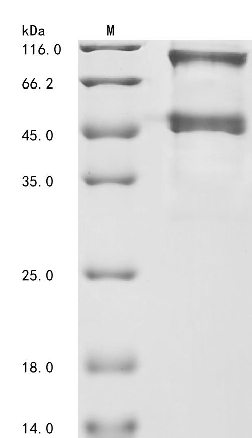 復溶:We recommend that this vial be briefly centrifuged prior to opening to bring the contents to the bottom. Please reconstitute protein in deionized sterile water to a concentration of 0.1-1.0 mg/mL.We recommend to add 5-50% of glycerol (final concentration) and aliquot for long-term storage at -20°C/-80°C. Our default final concentration of glycerol is 50%. Customers could use it as reference.
