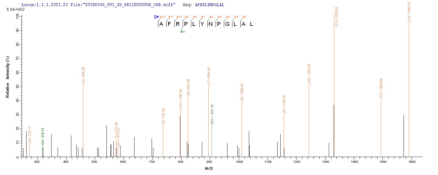 Based on the SEQUEST from database of E.coli host and target protein, the LC-MS/MS Analysis result of CSB-EP318588EZX could indicate that this peptide derived from E.coli-expressed Pseudomonas aeruginosa (strain ATCC 15692 / PAO1 / 1C / PRS 101 / LMG 12228) lasA.