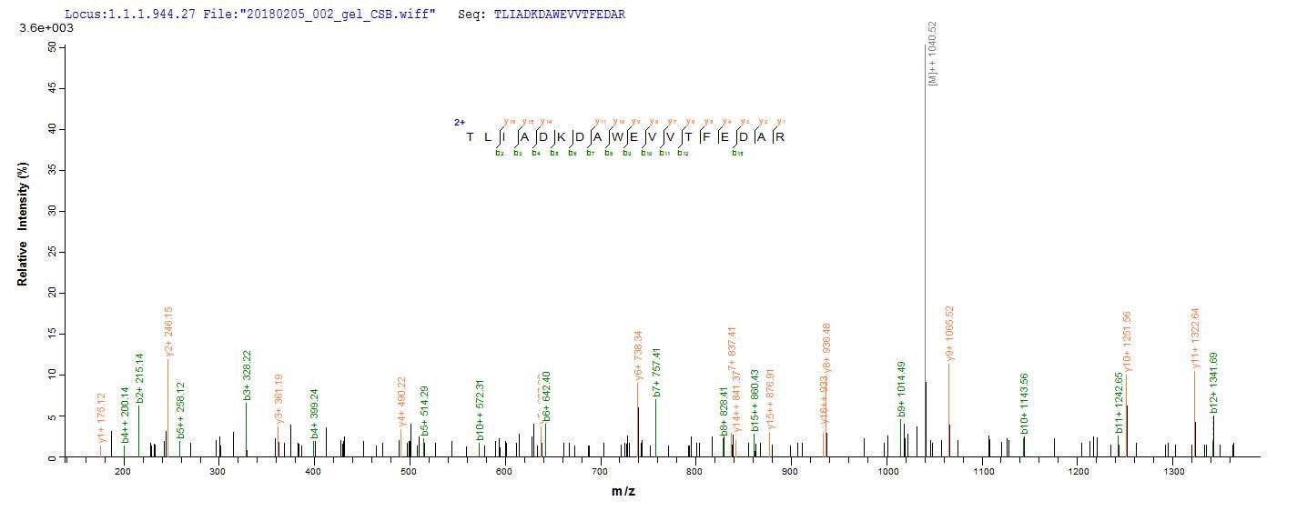 Based on the SEQUEST from database of E.coli host and target protein, the LC-MS/MS Analysis result of CSB-EP342468EZX could indicate that this peptide derived from E.coli-expressed Pseudomonas aeruginosa (strain ATCC 15692 / DSM 22644 / CIP 104116 / JCM 14847 / LMG 12228 / 1C / PRS 101 / PAO1) lpxC.