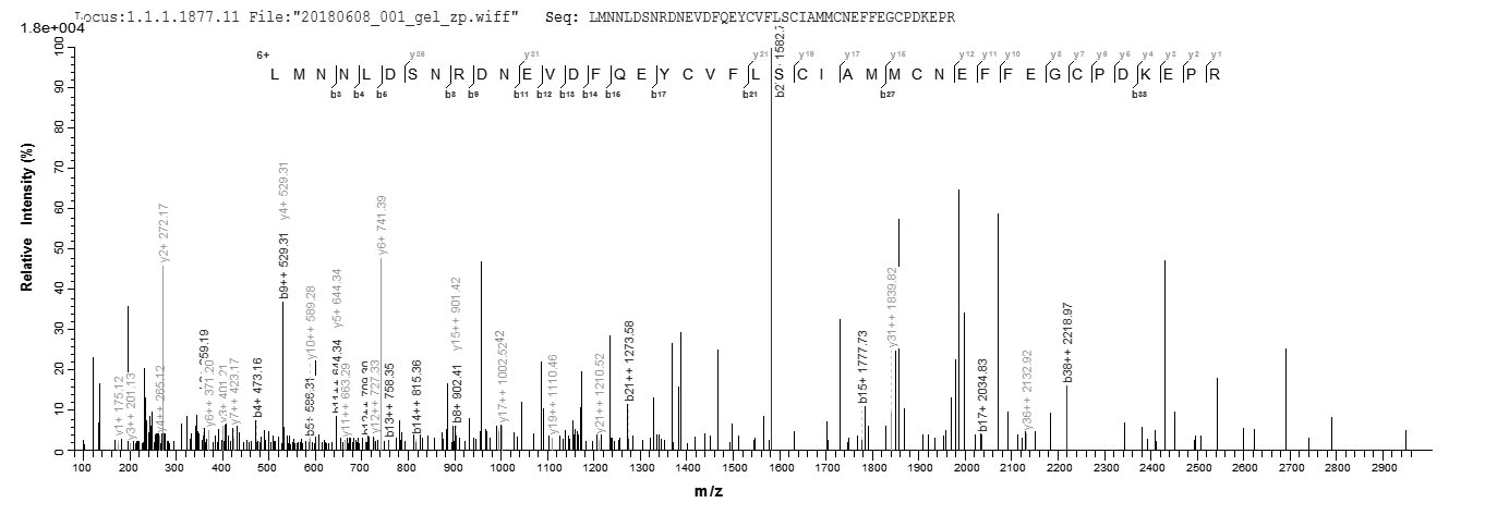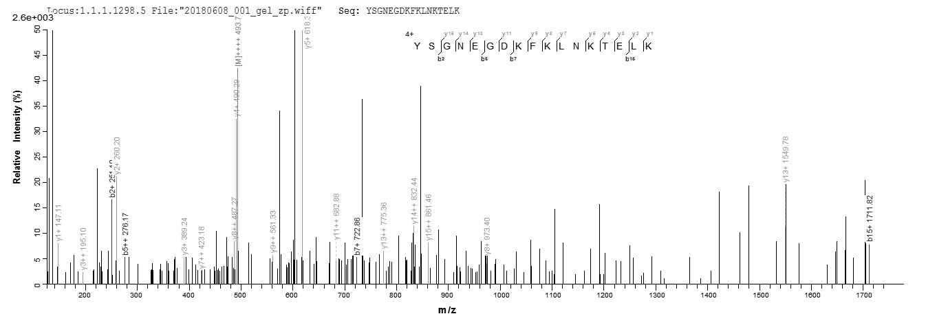 Based on the SEQUEST from database of E.coli host and target protein, the LC-MS/MS Analysis result of CSB-EP020632RA could indicate that this peptide derived from E.coli-expressed Rattus norvegicus (Rat) S100a4.