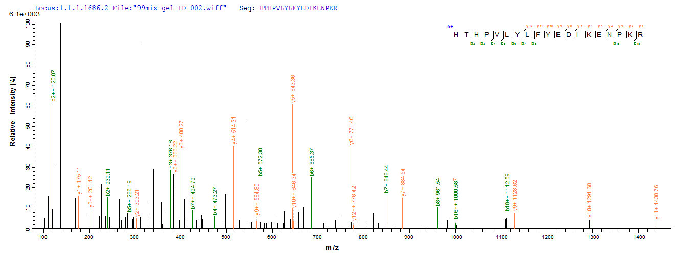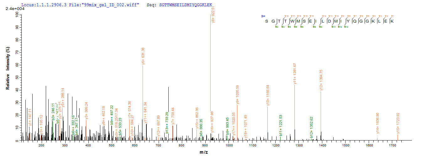 Based on the SEQUEST from database of E.coli host and target protein, the LC-MS/MS Analysis result of CSB-EP022933RA could indicate that this peptide derived from E.coli-expressed Rattus norvegicus (Rat) Sult1a1.
