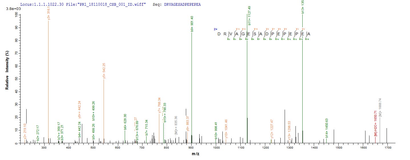 Based on the SEQUEST from database of Mammalian Cell host and target protein, the LC-MS/MS Analysis result of CSB-MP023446RA could indicate that this peptide derived from Mammalian Cell-expressed Rattus norvegicus (Rat) Tgfb1.