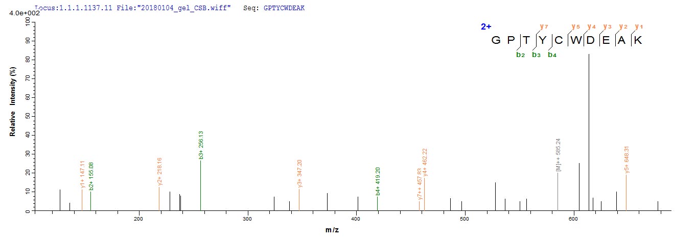 Based on the SEQUEST from database of Yeast host and target protein, the LC-MS/MS Analysis result of CSB-YP308458SEH could indicate that this peptide derived from Yeast-expressed Scytonema varium N/A.