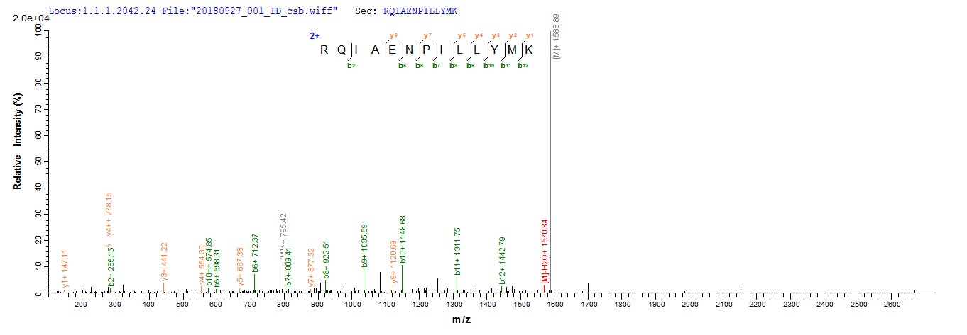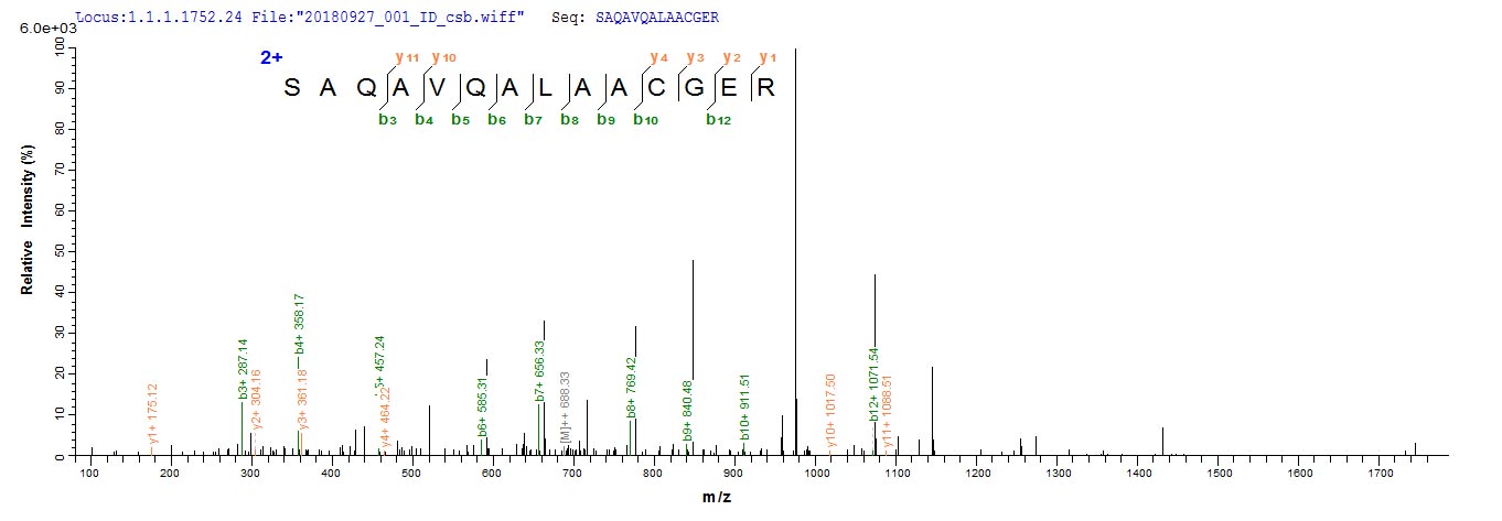 Based on the SEQUEST from database of E.coli host and target protein, the LC-MS/MS Analysis result of CSB-EP364758SZB could indicate that this peptide derived from E.coli-expressed Shigella flexneri grxD.