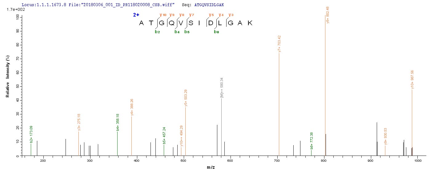 Based on the SEQUEST from database of E.coli host and target protein, the LC-MS/MS Analysis result of CSB-EP692016FLB could indicate that this peptide derived from E.coli-expressed Staphylococcus aureus (strain COL) fabF.