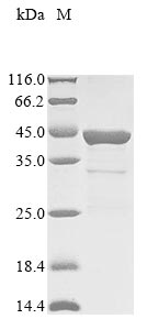 復(fù)溶:We recommend that this vial be briefly centrifuged prior to opening to bring the contents to the bottom. Please reconstitute protein in deionized sterile water to a concentration of 0.1-1.0 mg/mL.We recommend to add 5-50% of glycerol (final concentration) and aliquot for long-term storage at -20°C/-80°C. Our default final concentration of glycerol is 50%. Customers could use it as reference.