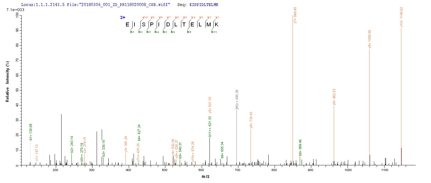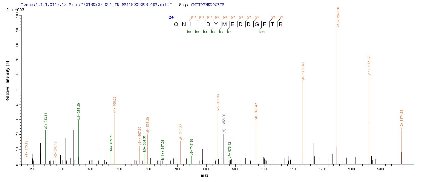 Based on the SEQUEST from database of E.coli host and target protein, the LC-MS/MS Analysis result of CSB-EP360946FKZ could indicate that this peptide derived from E.coli-expressed Staphylococcus aureus repD.