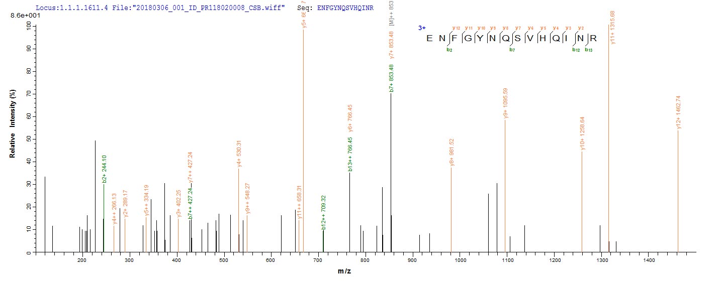 Based on the SEQUEST from database of E.coli host and target protein, the LC-MS/MS Analysis result of CSB-EP676488SBAF could indicate that this peptide derived from E.coli-expressed Streptococcus pyogenes serotype M28 (strain MGAS6180) speB.