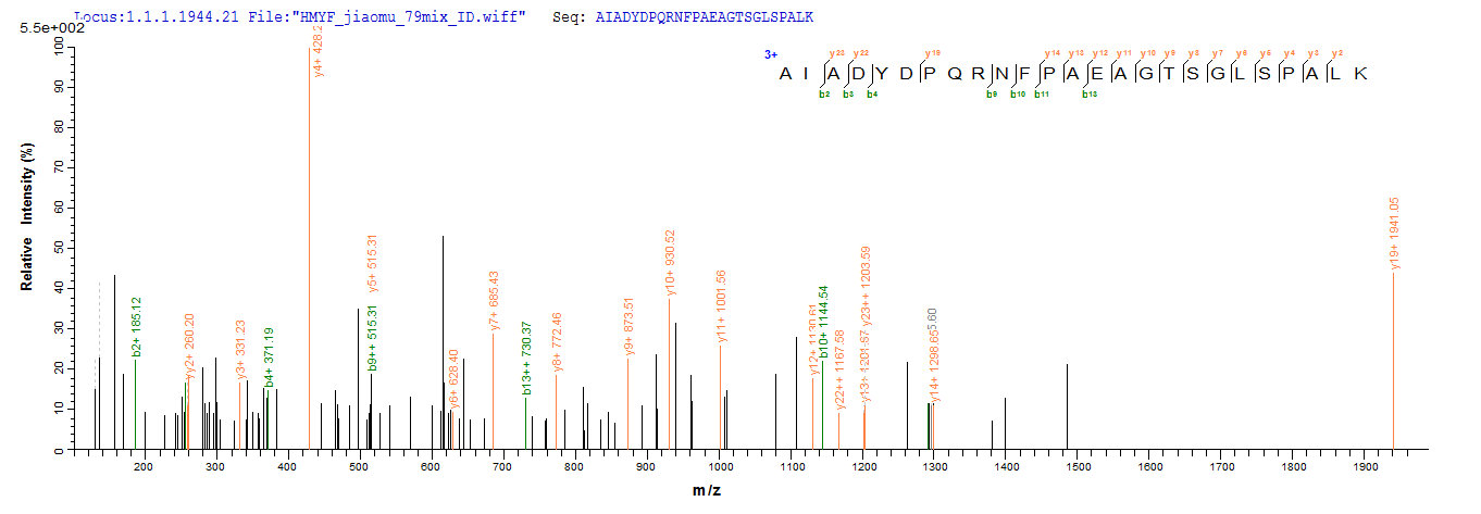 Based on the SEQUEST from database of E.coli host and target protein, the LC-MS/MS Analysis result of CSB-EP361494FPZ could indicate that this peptide derived from E.coli-expressed Synechococcus sp. (strain ATCC 27144 / PCC 6301 / SAUG 1402/1) (Anacystis nidulans) phr.