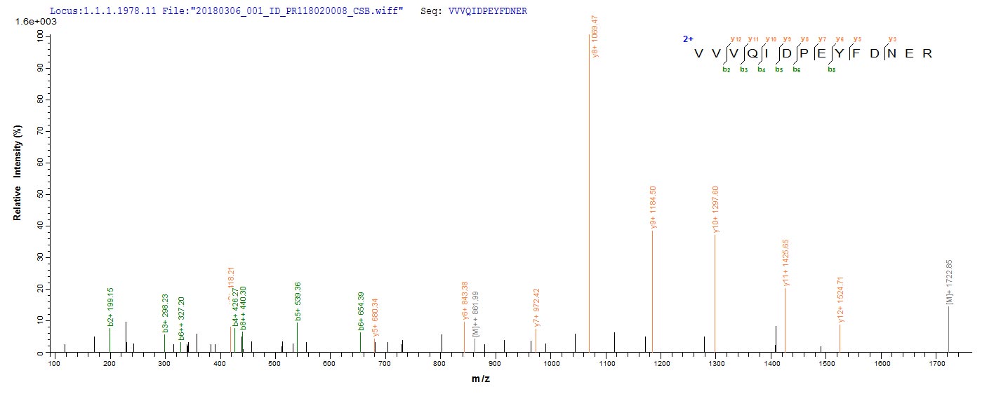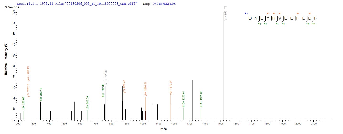 Based on the SEQUEST from database of E.coli host and target protein, the LC-MS/MS Analysis result of CSB-EP325116VAI(A4) could indicate that this peptide derived from E.coli-expressed Burkholderia thailandensis (strain ATCC 700388 / DSM 13276 / CIP 106301 / E264) VACWR062.