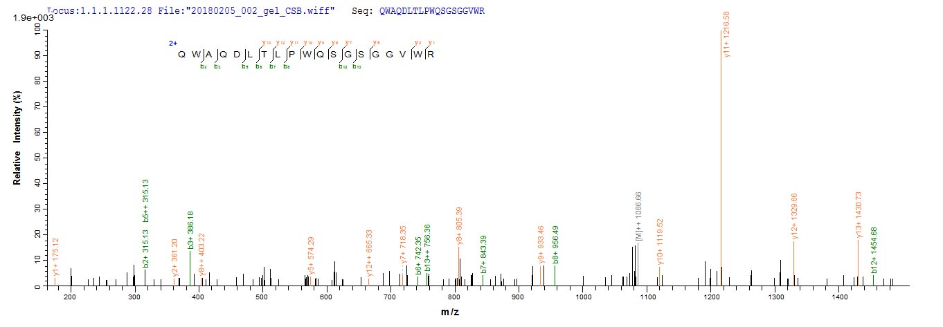 Based on the SEQUEST from database of E.coli host and target protein, the LC-MS/MS Analysis result of CSB-EP365905YAC1 could indicate that this peptide derived from E.coli-expressed Yellow fever virus (strain 17D vaccine) (YFV) N/A.