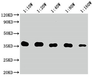 Predicted band size: 35 kDa