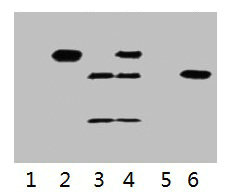 Lane 2: transfected 293 cell lysate with C-Myc-tag fusion protein