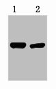 1μg V5 fusion protein + Primary antibody dilution at 1) 1:5000 2) 1:10000