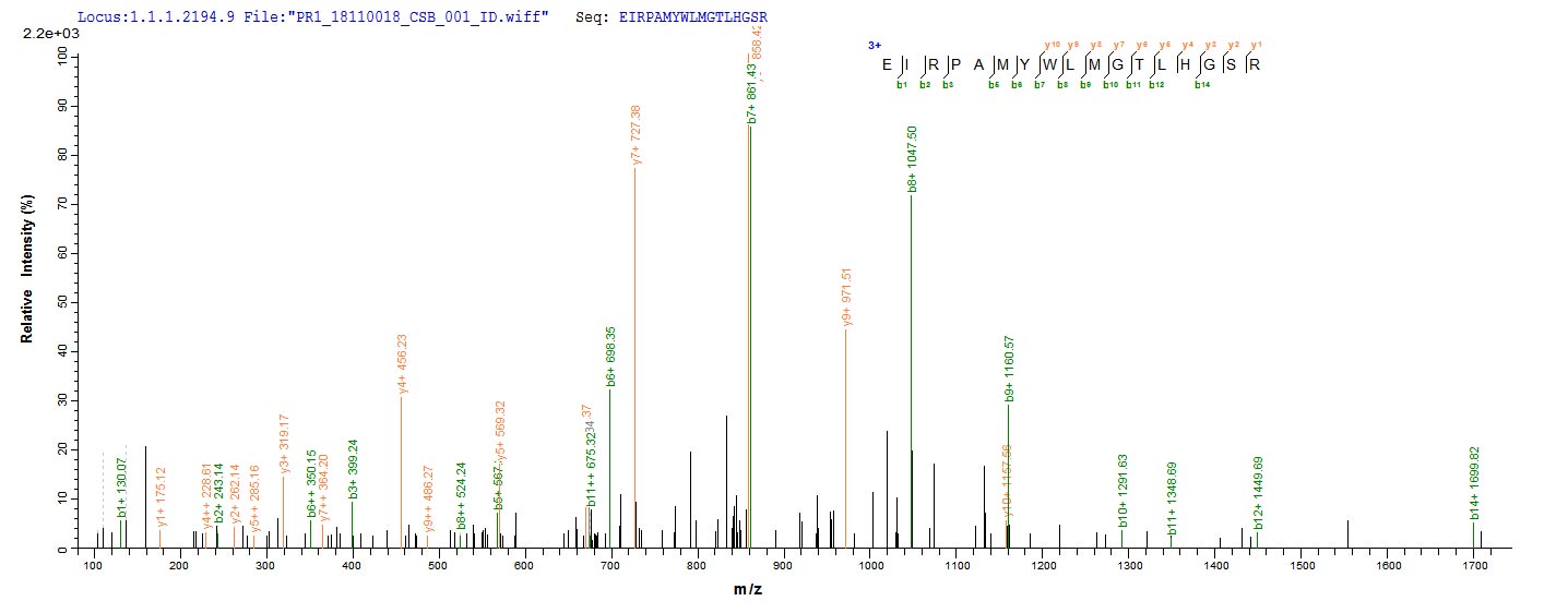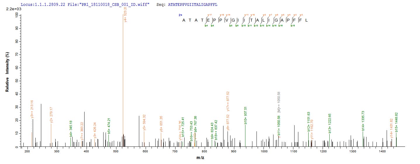 Based on the SEQUEST from database of E.coli host and target protein, the LC-MS/MS Analysis result of CSB-CF532244HTL(A4) could indicate that this peptide derived from E.coli-expressed Halobacterium salinarum (strain ATCC 29341 / DSM 671 / R1) btuC.