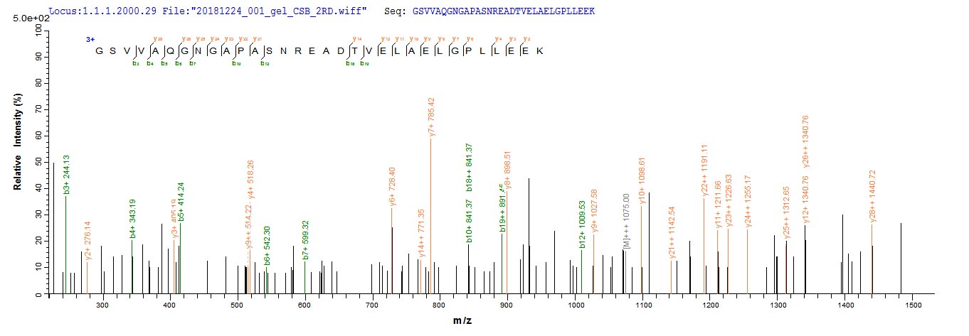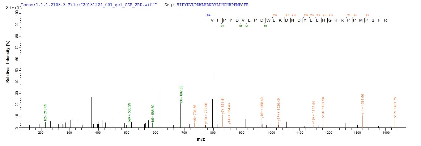 Based on the SEQUEST from database of E.coli host and target protein, the LC-MS/MS Analysis result of CSB-CF001367HU could indicate that this peptide derived from E.coli-expressed Homo sapiens (Human) ADIPOR1.