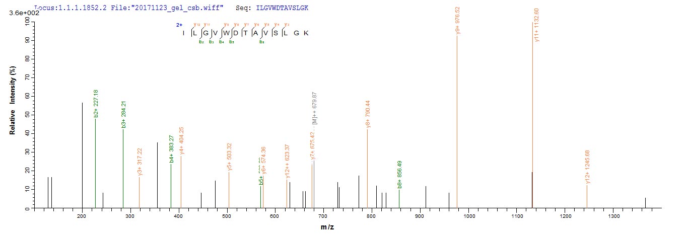 Based on the SEQUEST from database of E.coli host and target protein, the LC-MS/MS Analysis result of CSB-CF684475HU could indicate that this peptide derived from E.coli-expressed Homo sapiens (Human) ASPRV1.