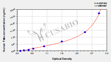 通過線性范圍來計算出實際的檢測樣本值,定量試劑盒標(biāo)準(zhǔn)曲線的相關(guān)系數(shù)R大于0.99。以CSB-E07270h(人脂聯(lián)素(ADP)ELISA Kit)為例的標(biāo)準(zhǔn)曲線。