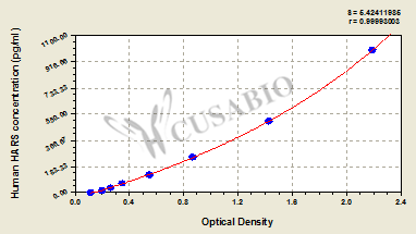 通過線性范圍來計(jì)算出實(shí)際的檢測(cè)樣本值,定量試劑盒標(biāo)準(zhǔn)曲線的相關(guān)系數(shù)R大于0.99。以CSB-E07270h(人脂聯(lián)素(ADP)ELISA Kit)為例的標(biāo)準(zhǔn)曲線。