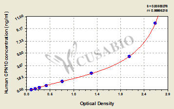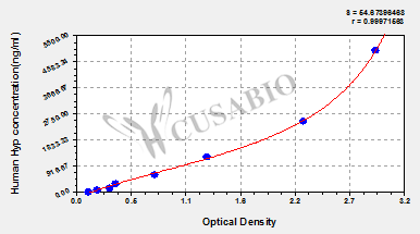通過線性范圍來計算出實際的檢測樣本值,定量試劑盒標準曲線的相關系數(shù)R大于0.99。以CSB-E07270h(人脂聯(lián)素(ADP)ELISA Kit)為例的標準曲線。