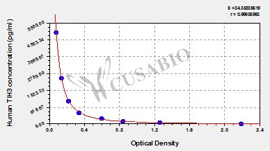 通過線性范圍來計算出實際的檢測樣本值,定量試劑盒標準曲線的相關(guān)系數(shù)R大于0.99。以CSB-E07270h(人脂聯(lián)素(ADP)ELISA Kit)為例的標準曲線。
