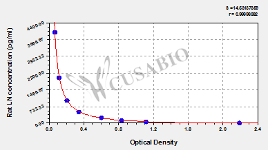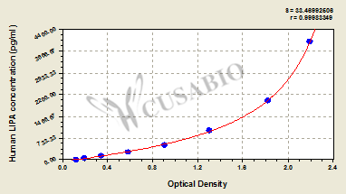 通過線性范圍來計算出實際的檢測樣本值,定量試劑盒標準曲線的相關(guān)系數(shù)R大于0.99。以CSB-E07270h(人脂聯(lián)素(ADP)ELISA Kit)為例的標準曲線。
