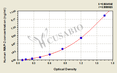 通過(guò)線性范圍來(lái)計(jì)算出實(shí)際的檢測(cè)樣本值,定量試劑盒標(biāo)準(zhǔn)曲線的相關(guān)系數(shù)R大于0.99。以CSB-E07270h(人脂聯(lián)素(ADP)ELISA Kit)為例的標(biāo)準(zhǔn)曲線。