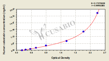 通過線性范圍來計(jì)算出實(shí)際的檢測(cè)樣本值,定量試劑盒標(biāo)準(zhǔn)曲線的相關(guān)系數(shù)R大于0.99。以CSB-E07270h(人脂聯(lián)素(ADP)ELISA Kit)為例的標(biāo)準(zhǔn)曲線。