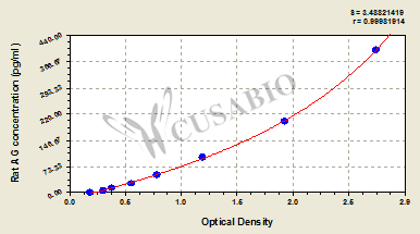 通過(guò)線性范圍來(lái)計(jì)算出實(shí)際的檢測(cè)樣本值,定量試劑盒標(biāo)準(zhǔn)曲線的相關(guān)系數(shù)R大于0.99。以CSB-E07270h(人脂聯(lián)素(ADP)ELISA Kit)為例的標(biāo)準(zhǔn)曲線。