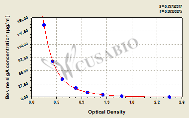 通過線性范圍來計算出實際的檢測樣本值,定量試劑盒標準曲線的相關(guān)系數(shù)R大于0.99。以CSB-E07270h(人脂聯(lián)素(ADP)ELISA Kit)為例的標準曲線。