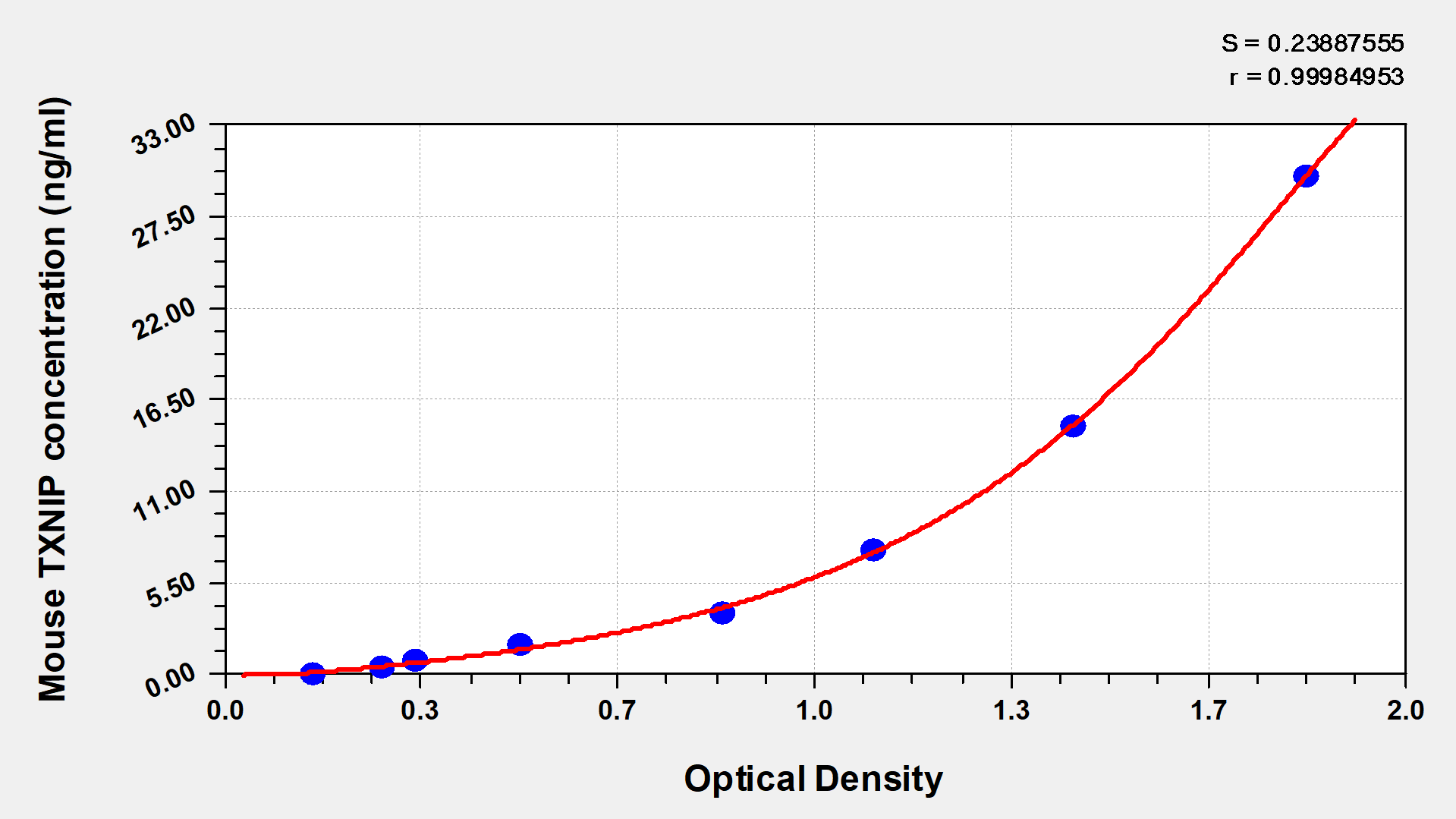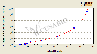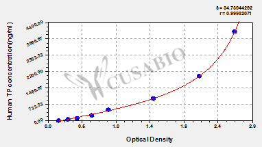 通過(guò)線(xiàn)性范圍來(lái)計(jì)算出實(shí)際的檢測(cè)樣本值,定量試劑盒標(biāo)準(zhǔn)曲線(xiàn)的相關(guān)系數(shù)R大于0.99。以CSB-E07270h(人脂聯(lián)素(ADP)ELISA Kit)為例的標(biāo)準(zhǔn)曲線(xiàn)。