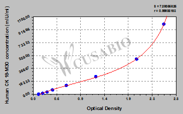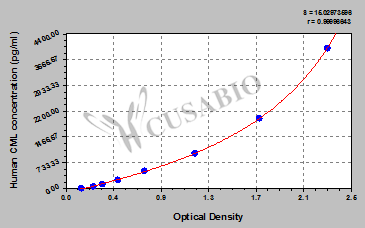 通過(guò)線性范圍來(lái)計(jì)算出實(shí)際的檢測(cè)樣本值,定量試劑盒標(biāo)準(zhǔn)曲線的相關(guān)系數(shù)R大于0.99。以CSB-E07270h(人脂聯(lián)素(ADP)ELISA Kit)為例的標(biāo)準(zhǔn)曲線。