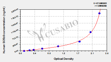 通過(guò)線性范圍來(lái)計(jì)算出實(shí)際的檢測(cè)樣本值,定量試劑盒標(biāo)準(zhǔn)曲線的相關(guān)系數(shù)R大于0.99。以CSB-E07270h(人脂聯(lián)素(ADP)ELISA Kit)為例的標(biāo)準(zhǔn)曲線。