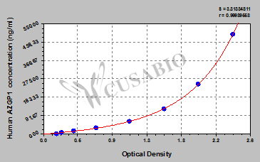 通過線性范圍來計算出實際的檢測樣本值,定量試劑盒標(biāo)準(zhǔn)曲線的相關(guān)系數(shù)R大于0.99。以CSB-E07270h(人脂聯(lián)素(ADP)ELISA Kit)為例的標(biāo)準(zhǔn)曲線。