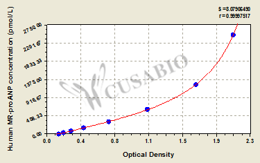 通過(guò)線性范圍來(lái)計(jì)算出實(shí)際的檢測(cè)樣本值,定量試劑盒標(biāo)準(zhǔn)曲線的相關(guān)系數(shù)R大于0.99。以CSB-E07270h(人脂聯(lián)素(ADP)ELISA Kit)為例的標(biāo)準(zhǔn)曲線。