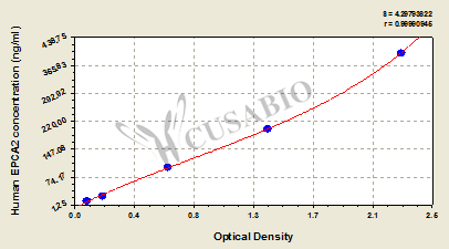 通過(guò)線性范圍來(lái)計(jì)算出實(shí)際的檢測(cè)樣本值,定量試劑盒標(biāo)準(zhǔn)曲線的相關(guān)系數(shù)R大于0.99。以CSB-E07270h(人脂聯(lián)素(ADP)ELISA Kit)為例的標(biāo)準(zhǔn)曲線。