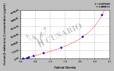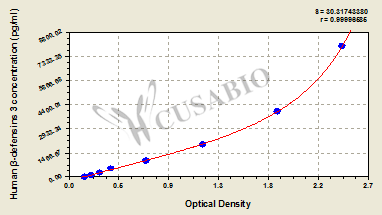通過(guò)線性范圍來(lái)計(jì)算出實(shí)際的檢測(cè)樣本值,定量試劑盒標(biāo)準(zhǔn)曲線的相關(guān)系數(shù)R大于0.99。以CSB-E07270h(人脂聯(lián)素(ADP)ELISA Kit)為例的標(biāo)準(zhǔn)曲線。
