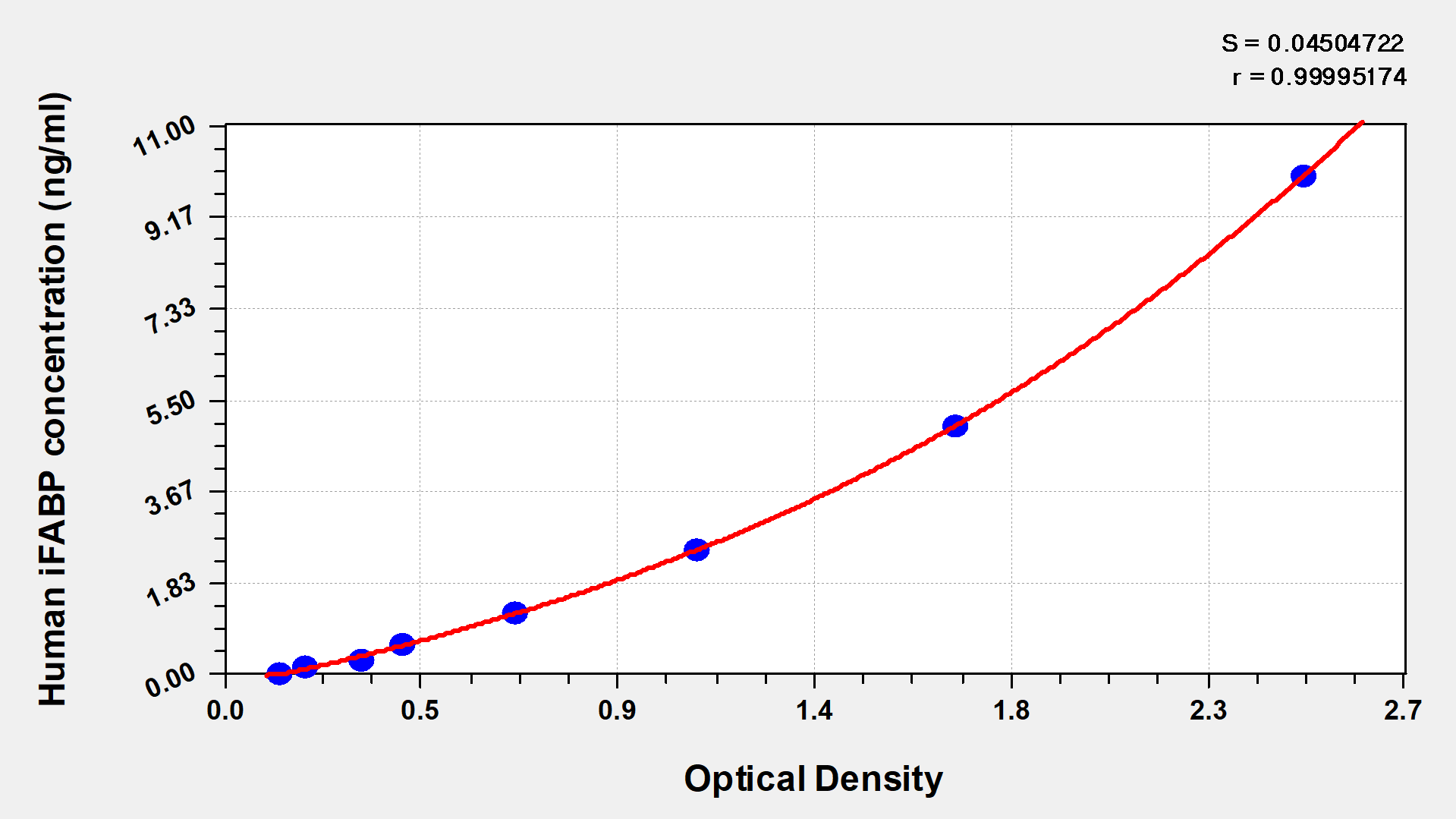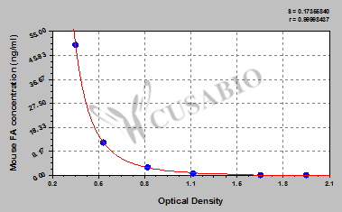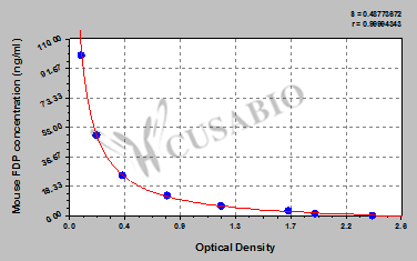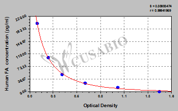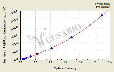 通過(guò)線性范圍來(lái)計(jì)算出實(shí)際的檢測(cè)樣本值,定量試劑盒標(biāo)準(zhǔn)曲線的相關(guān)系數(shù)R大于0.99。以CSB-E07270h(人脂聯(lián)素(ADP)ELISA Kit)為例的標(biāo)準(zhǔn)曲線。