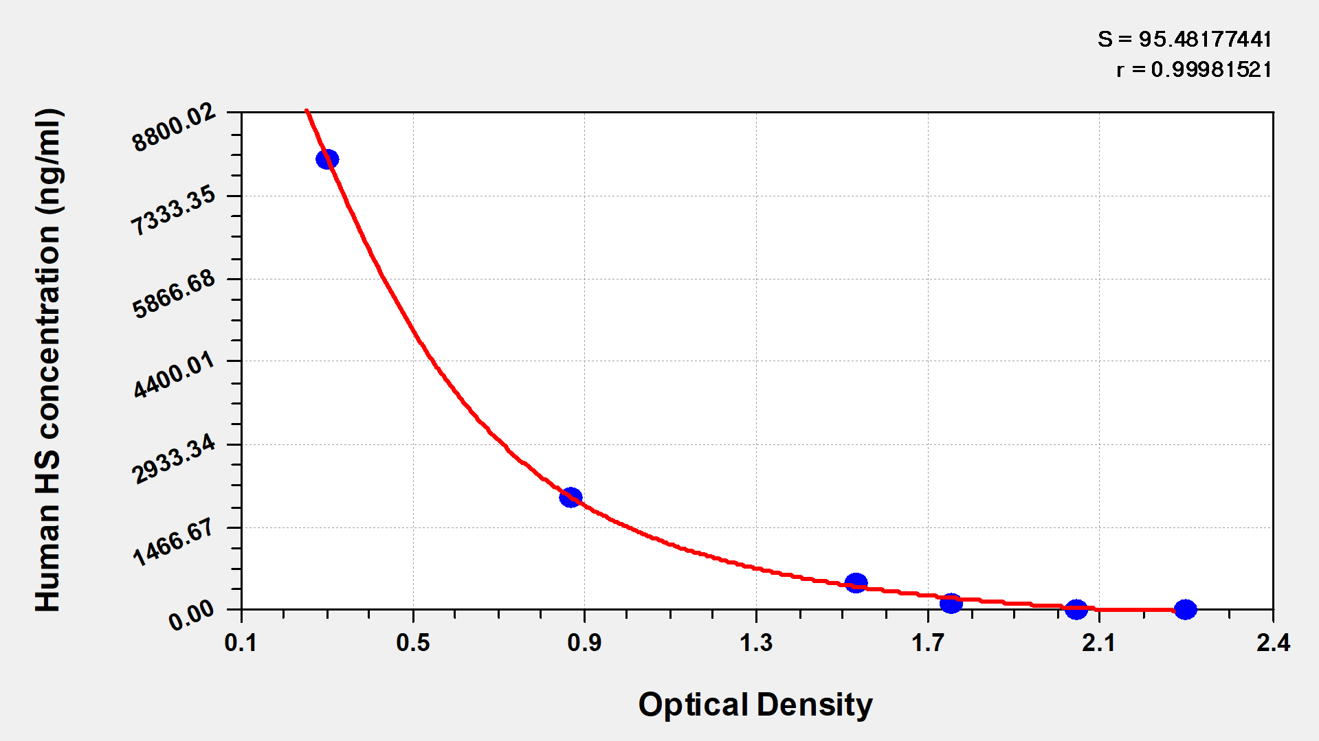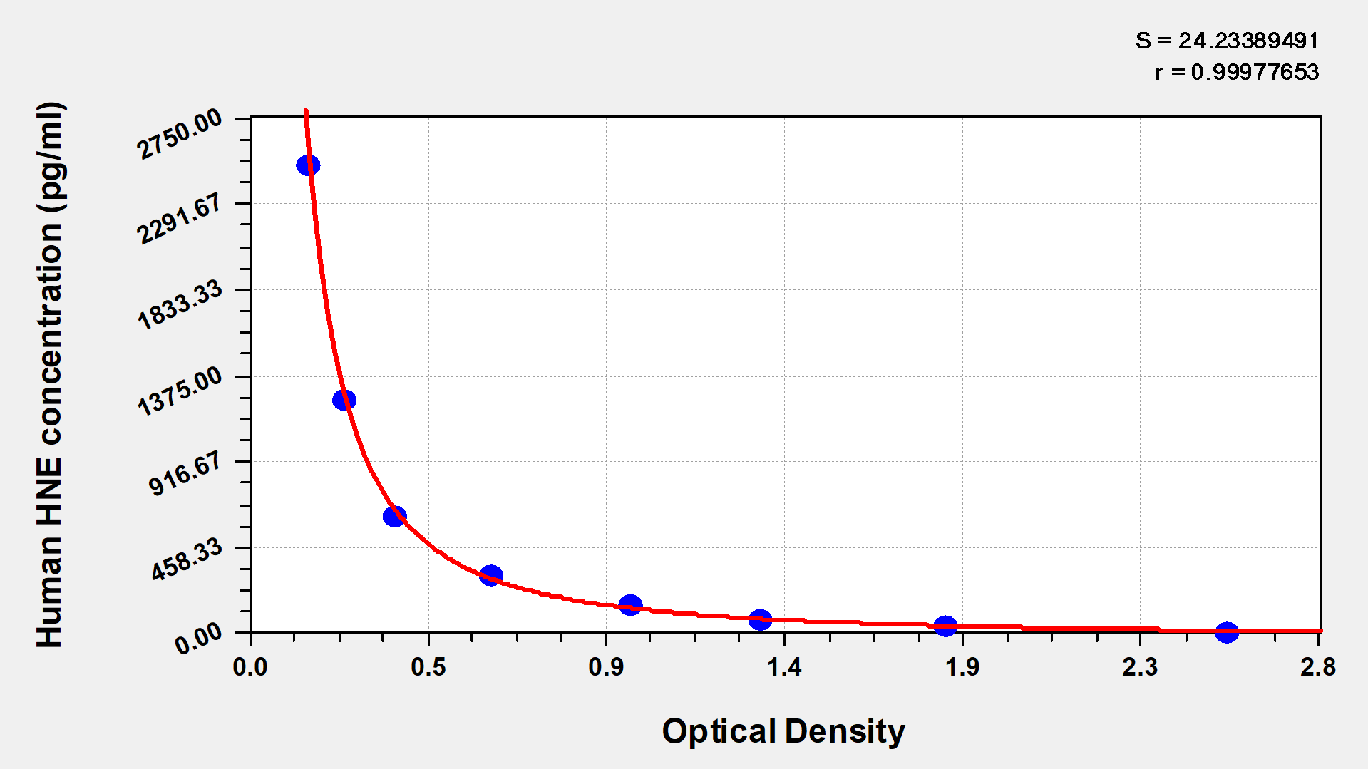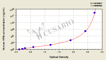通過線性范圍來計(jì)算出實(shí)際的檢測樣本值,定量試劑盒標(biāo)準(zhǔn)曲線的相關(guān)系數(shù)R大于0.99。以CSB-E07270h(人脂聯(lián)素(ADP)ELISA Kit)為例的標(biāo)準(zhǔn)曲線。