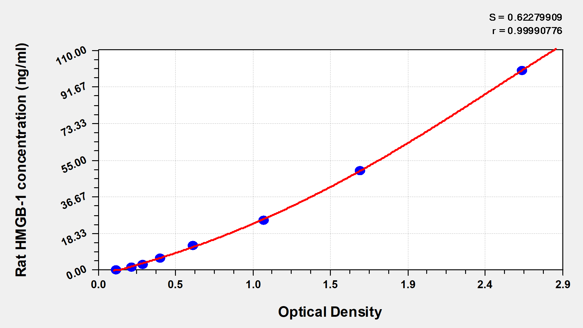 最低檢測限是靈敏度的測試指標(biāo)。由使用的抗體效價(jià)等決定的,在研發(fā)過程中,一般會優(yōu)化保證高靈敏度、低背景的檢測結(jié)果從而大大提高試劑盒的靈敏度。檢測限越低,靈敏度越高。通過將零標(biāo)準(zhǔn)重復(fù)獲得的平均 O.D. 加上3個標(biāo)準(zhǔn)偏差來確定靈敏度。