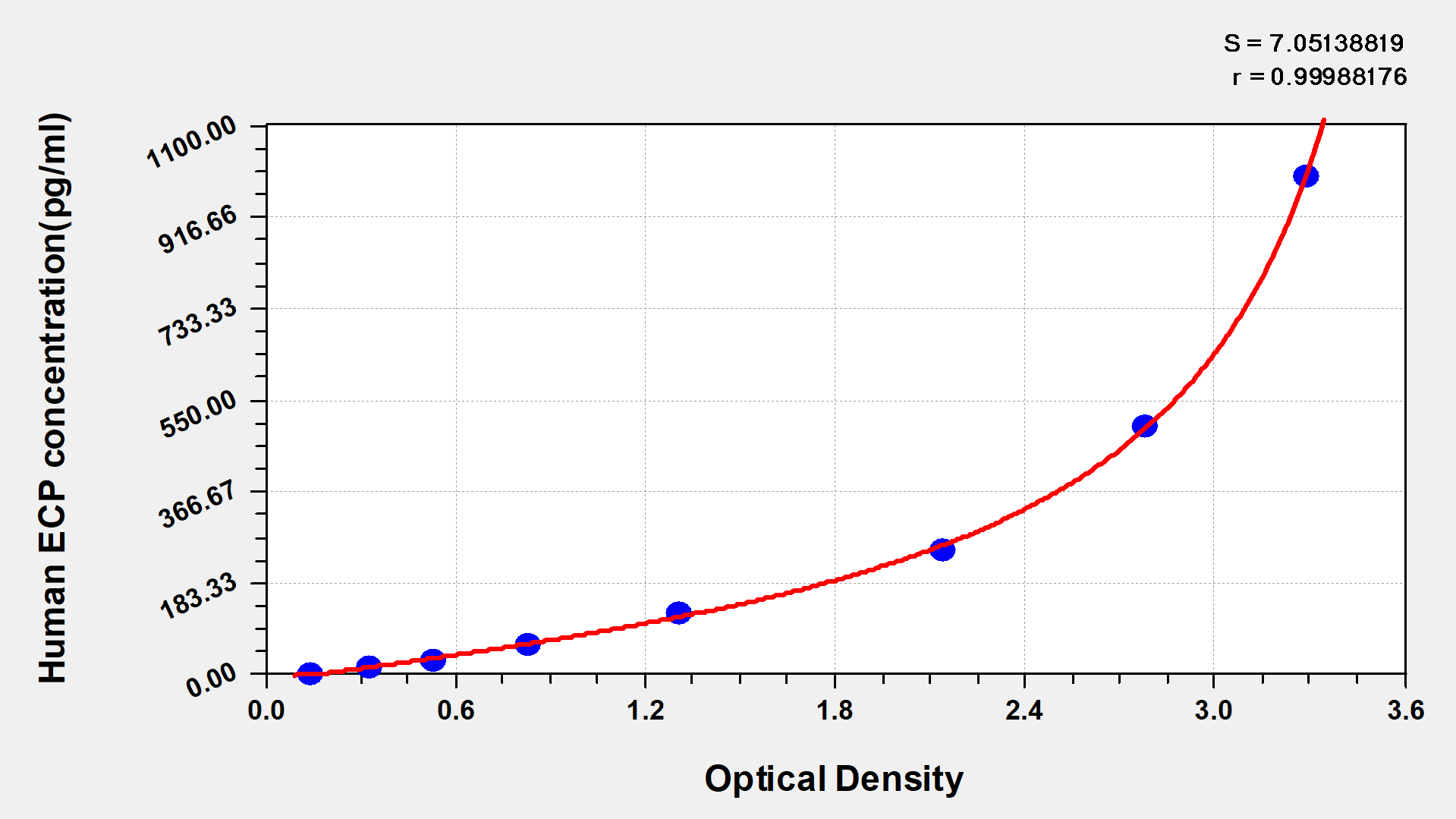 通過線性范圍來計算出實際的檢測樣本值,定量試劑盒標準曲線的相關系數(shù)R大于0.99。以CSB-E07270h(人脂聯(lián)素(ADP)ELISA Kit)為例的標準曲線。