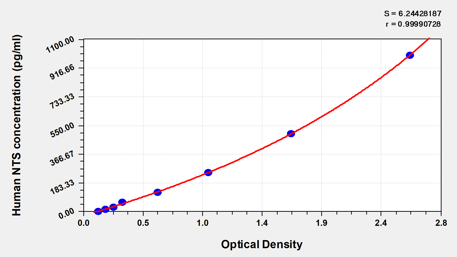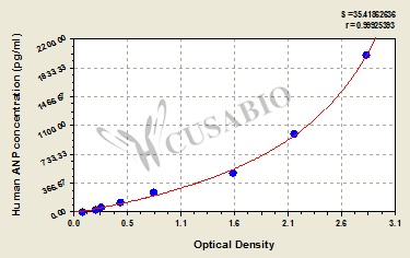 通過(guò)線性范圍來(lái)計(jì)算出實(shí)際的檢測(cè)樣本值,定量試劑盒標(biāo)準(zhǔn)曲線的相關(guān)系數(shù)R大于0.99。以CSB-E07270h(人脂聯(lián)素(ADP)ELISA Kit)為例的標(biāo)準(zhǔn)曲線。