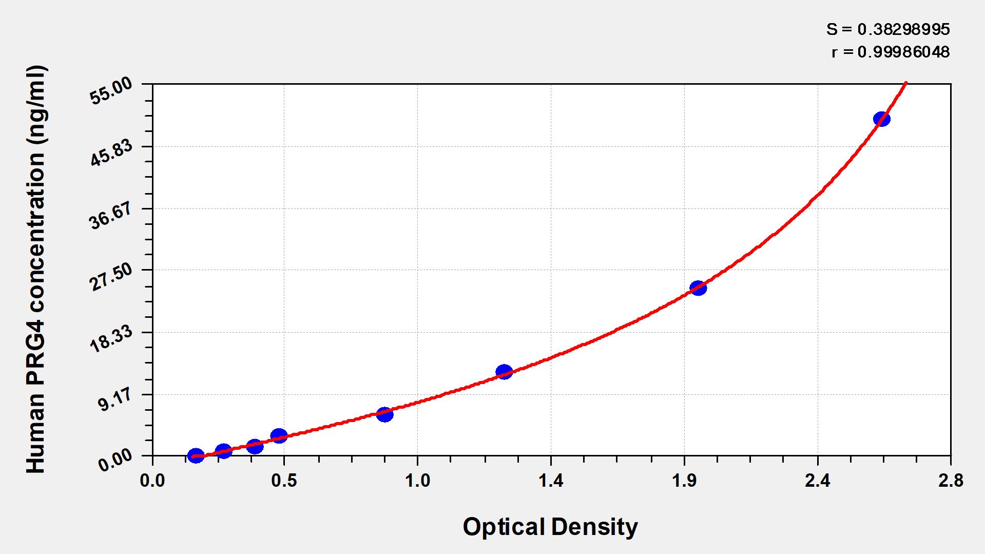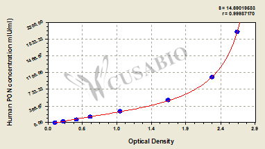 通過線性范圍來計算出實際的檢測樣本值,定量試劑盒標準曲線的相關系數R大于0.99。以CSB-E07270h(人脂聯(lián)素(ADP)ELISA Kit)為例的標準曲線。
